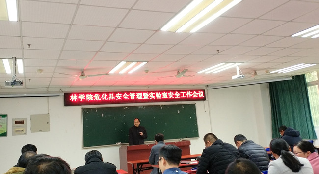 12月29日下午,林学院在田家炳实验楼214召开危险化学品管理暨期末实验室安全工作会议,林学实验中心负责人以及各省部级科研平台危险化学品管理人员参加会议,学院党委书记蓝天水、院长马祥庆、院党委副书记黄文龙、副院长陈世品、余坤勇出席。