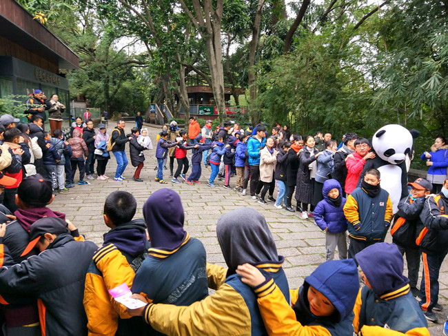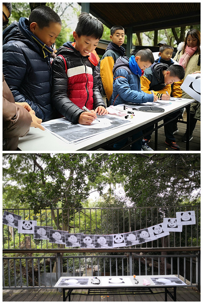 表演结束后,党员志愿者们按照事先的分工,在“熊猫科普小课堂”的各个项目展位中承担起相应的工作。部分志愿者承担了讲解、导游的工作,带领游客参观园区各展馆,向游客传达“保护野生动物、保护生态环境”的理念。此外,活动设置了“妙笔生花”、“趣味拼图、“盲人摸象”等3个寓教于乐的游戏点,结合与野生动物知识相关的“灯谜”挂条,让游客们在娱乐之余了解到更多野生动物保护的相关知识。3个小游戏都受到了游客们,特别是小朋友们的欢迎。他们通过绘制大熊猫笑脸图、寻找合适的大熊猫拼图,增强了对大熊猫乃至其他动物的感性认知。一个小朋友在参与游戏时情不自禁地说道:“妈妈,熊猫这么可爱,我们要保护好他们!”在场的人都对孩子充满童趣和真诚的话语忍俊不禁。