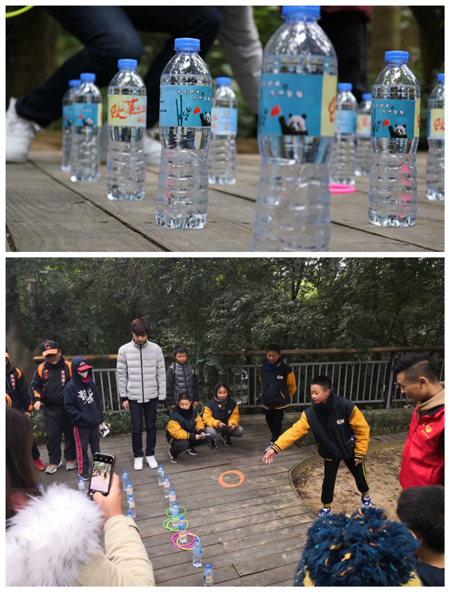 完成3个游戏点的任务的游客可参与最后的套圈抽奖环节。为此,志愿者们专门准备了四十个印有DIY包装“改革开放四十周年”·“珍爱环境,保护熊猫”的矿泉水瓶,根据套中的矿泉水瓶,可到相应的工作点换取礼物。最后志愿者们还将特色矿泉水赠予游客,接力传递环保理念,愿祖国的未来山更青、水更绿。