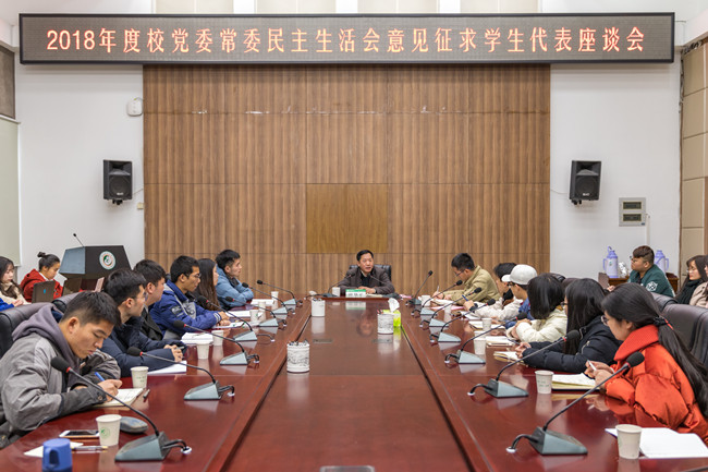 为深入学习贯彻习近平新时代中国特色社会主义思想,开好2018年度校党委常委民主生活会,12月29日下午,校党委常委民主生活会意见征求学生代表座谈会在武夷厅召开。校党委副书记曾华平参加座谈会并讲话。