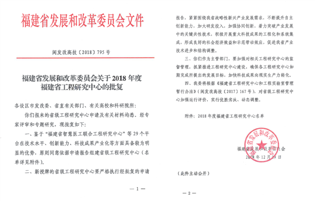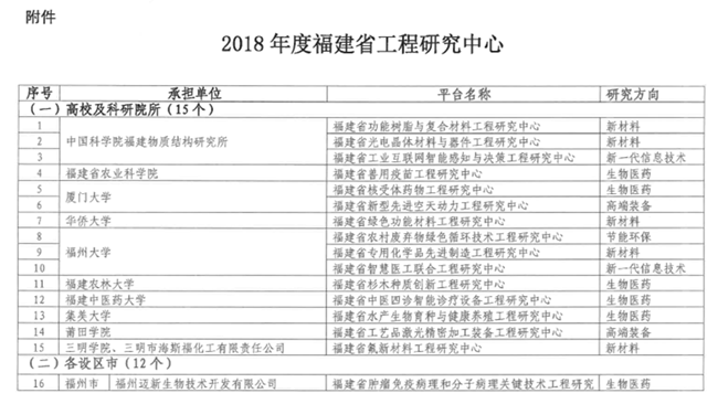 相关文件及2018年度福建省工程研究中心名单