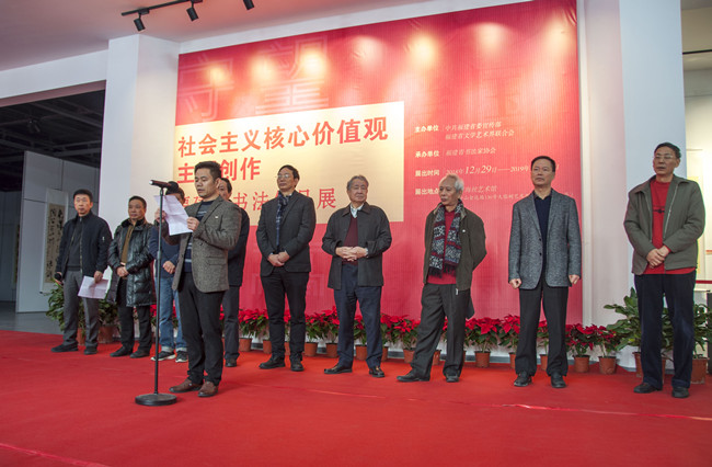 冯辉荣教授作为入展作者代表在开幕仪式上致辞。他表示:“此次书法展对于社会主义核心价值观传播和中华优秀传统文化传承,起到凝聚民心、培育新人、振兴文化、拓展形象的作用,给书写者和社会增添了满满的正能量。”