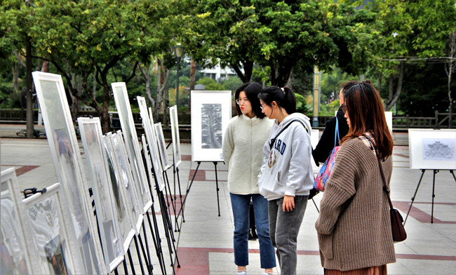 为践行习近平总书记“绿水青山就是金山银山”的发展理念,展现泰宁的新时代风貌,1月7日,“天地泰宁·静心之城”纪念改革开放40周年暨高校师生泰宁写生作品巡展在学校拓荒广场展出。