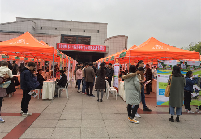 本次招聘会共吸引福建省人力资源服务有限公司、福建省林业勘察设计院、福建新华都综合百货有限公司、福州国美电器有限公司等197家省内外企事业单位进校招聘,提供了农林类、环保类、管理类、教育类等各类就业岗位近3500个,近2600名2019届毕业生参加此次招聘会。招聘会现场设立中国海峡人才市场就业创业政策咨询点,邀请中国海峡人才市场驻校专员现场为毕业生提供一对一求职指导服务,吸引了大批毕业生前来咨询;招聘会设立了新疆少数民族毕业生就业政策咨询点,为新疆少数民族同学提供精细化的咨询与服务,并赠送相关资料。