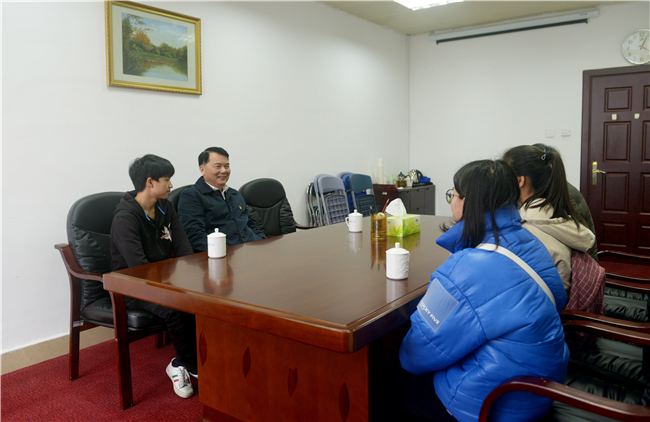 “在学校还习惯吗?”“春节回家过年吗?”座谈交流中严金静书记详细询问了每一位学生的学习生活情况及寒假安排。“你们有什么困难都可以找我,希望我们可以做朋友。”亲切的话语瞬间拉近了彼此的距离,每位学生都欣然分享了他们在学校的收获及学习情况。