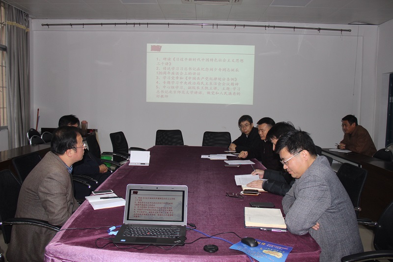 1月9日下午,作物科学学院党委于作物楼三楼会议室召开了理论中心组学习会暨2018年处级民主生活会专题学习研讨。会议由院党委书记童庆满主持,学院党政班子成员、党委委员参会。