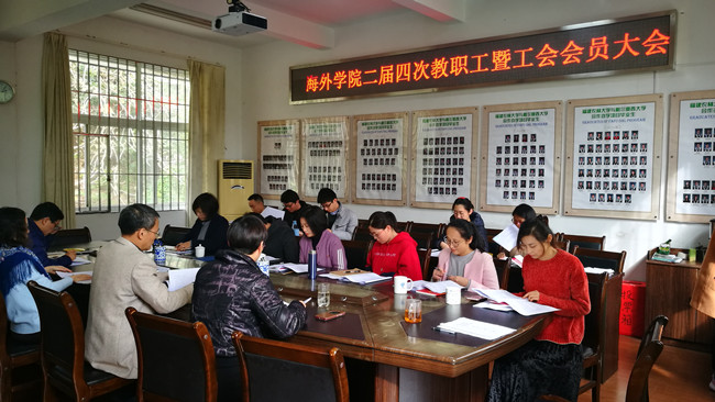 1月10日,海外学院二届四次教职工暨工会会员大会在院办305会议室举行,会议由院工会主席魏丽卿主持,学院党政工领导及全体教职工参会。