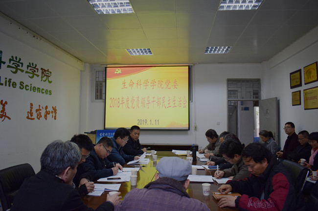 1月11日下午,生命科学学院党委召开2018年度党员领导干部民主生活会。校第二督导组副组长、党(校)办副主任沈锐强,督导组成员保卫处办公室主任黄锦湖到会指导,学院党委书记林豪森主持会议。