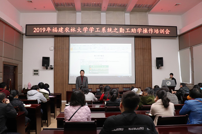 1月14日下午,勤工助学信息系统操作培训会在龙岩厅举办,学生处有关负责人,机关学生勤工助学用工部门负责人等近40人参加培训。