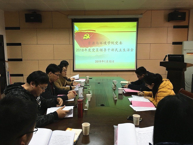 1月15日下午,资源与环境学院党委2018年度党员领导干部民主生活会在博学楼210会议室召开。校第二督导组副组长、(党)校办副主任沈锐强、督导组成员学工部正科级辅导员陈菁到会督导。学院领导班子、党委委员、各系主任、科级干部、工会主席、校第四次党代会代表参加了本次民主生活会。会议由学院党委副书记(主持工作)陈月霄主持。