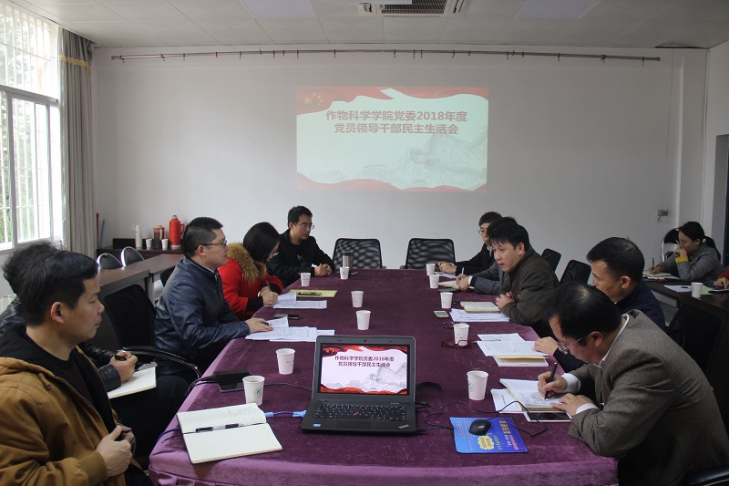 1月11日下午,作物科学学院党委在作物楼302会议室召开2018年度党员领导干部民主生活会。学院党政班子成员参会,党委委员、科级干部、系主任、工会主席、校第四次党代会代表、学生代表列席会议,会议由院党委书记童庆满主持。校第三督导组监察处副处长刘鸿、组员校纪委纪律审查科科长蓝锋到会指导。