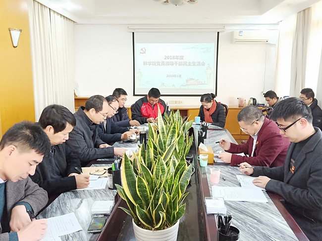1月18日上午,林学院在学院四楼会议室召开2018年度党员领导干部民主生活会。学院领导、党委委员、科级干部、各系、实验中心正副主任、院工会主席、校第四次党代会代表一起出席了会议。校督导组张发林和胡之光两位同志到会指导。会议由院党委书记蓝天水主持。