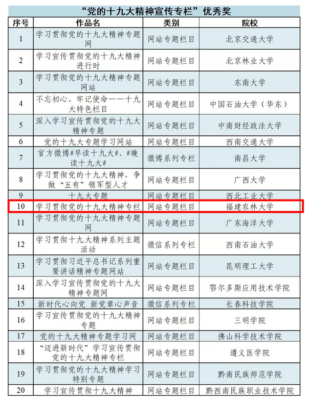 近日,由教育部思想政治工作司指导,中国大学生在线、全国高校校园网站联盟联合主办的 “党的十九大精神宣传专栏征集暨第二届全国高校‘名站名栏’征选活动”结果揭晓,我校报送的“深入学习宣传贯彻党的十九大精神专栏”作品荣获“党的十九大精神宣传专栏”优秀奖。此次“名站名栏”征选活动从2017年12月持续到2018年4月,我校官网“深入学习宣传贯彻党的十九大精神专栏”开设于党的十九大召开之前,积极营造氛围,十九大召开后截至2018年4月持续更新了326篇相关报道,尤其突出报道了《喜迎十九大 五年看变化——党的十八大以来开云网页版改革发展的实践与成效》等8篇专题通讯稿,积极宣传报道学校、校内各单位和师生学习贯彻党的十九大精神活动,全面反映学校及师生学习宣传贯彻党的十九大精神情况、做法、经验和成效,取得良好的反响。