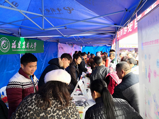 1月22日,我校前往南平市松溪县参加由科技部、中共福建省委、福建省人民政府主办,中共福建省委宣传部、中共福建省委文明办、教育厅、科技厅、卫健委、文化和旅游厅、民政厅、科协等15家单位联合承办的全国文化科技卫生“三下乡”集中示范活动。科技部党组成员、副部长、国家外国专家局局长张建国,福建省委常委、秘书长、宣传部长梁建勇,省教育工委副书记王建南,团省委副书记杨溢等领导先后来到我校服务展示区,与师生亲切交流,了解学校在实践育人、社会服务等方面的工作情况,对我校多年坚持扎根大地、实践育人、服务社会的成效给予高度肯定。