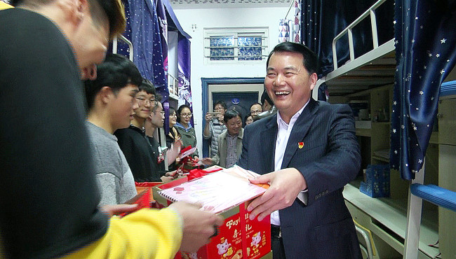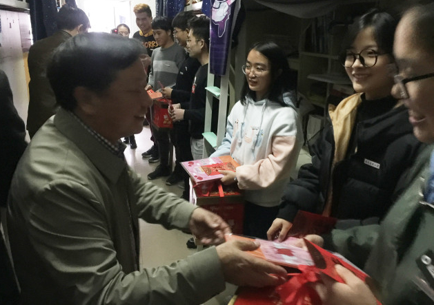 在传统节日春节即将来临之际,1月30日下午,校党委书记严金静、校长兰思仁、校党委副书记曾华平一行来到北区学生宿舍看望慰问寒假留校学生,为他们送去学校的关怀和新春的祝福。