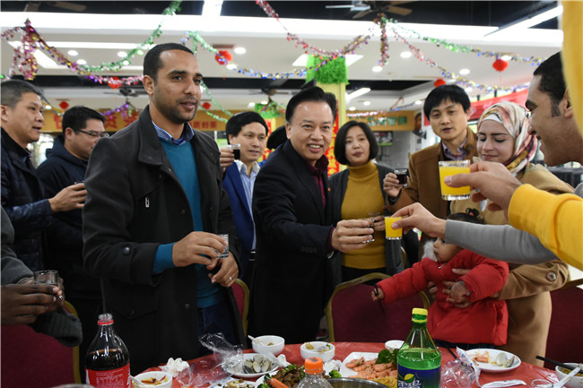 2月4日,农历大年三十,中国传统的除夕夜。在这家家户户庆团圆、迎新春的日子里,为了让寒假期间留校的中外师生同样感受到春节欢乐祥和的喜庆氛围,学校在第八餐厅早早为他们准备了丰盛的年夜饭。副校长郑宝东、郑郁善及相关职能部门负责人与留校师生欢聚一堂,共享温馨年夜饭,为他们送去学校的关怀和新年的祝福,共迎新春佳节。