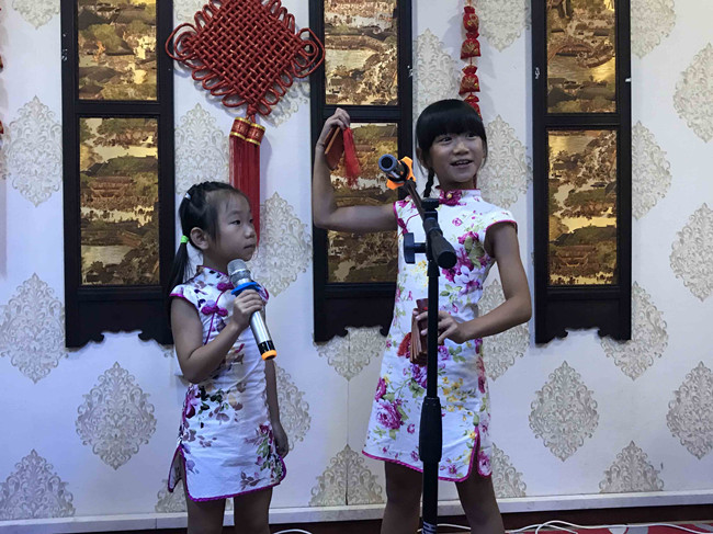 节目组巧妙地把猜灯谜与元宵歌舞表演等节目穿插安排,引得现场来宾不时为灯谜沉思,不时为表演赞叹。由树德学校4位小学生表演的舞蹈《金猪闹元宵》拉开了庆祝晚会的序幕,周老师的吉他弹唱《外面的世界》和独创歌曲《我的思念》,以其优美隽永的音色,勾起了每个人对祖国母亲的深深思念。20名小朋友组成的“迎春童话T恤秀”表演,以“萌化你”的表情和肢体动作,掀起了晚会的一大高潮。此外,小朋友和老师们还为大家带来了传统乐器葫芦丝演奏《荷塘月色》、快板《说大话》、歌曲独唱《团圆》等。