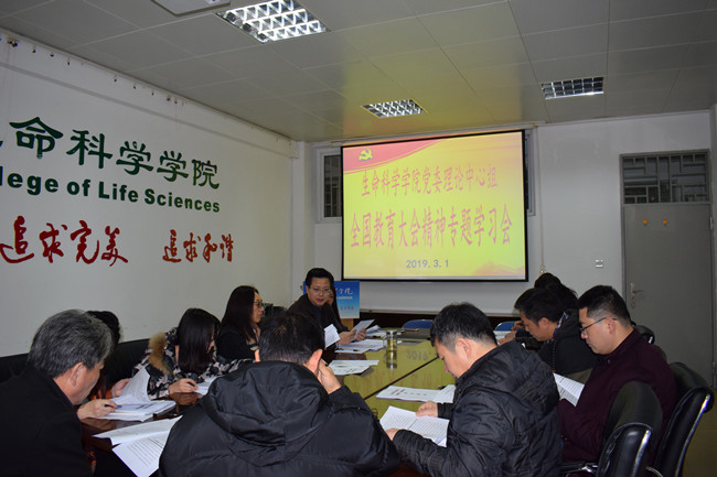 3月1日上午,生命科学学院党委召开理论中心组学习会,就全国教育大会精神专题集中学习研讨,会议还传达学习了全国宣传思想工作会议、2019年全国教育工作会议、全国全省高校党的建设工作会议和全省教育大会精神。学院党委书记林豪森主持会议。