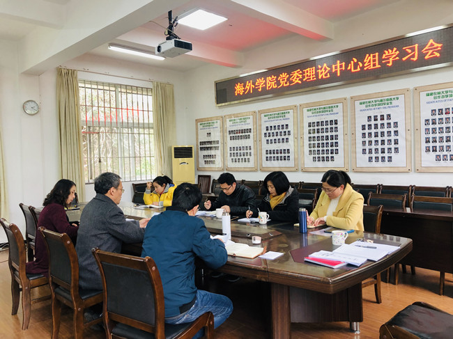 3月1日下午,海外学院党委理论学习中心组在305会议室集中学习习近平总书记关于“立德树人”重要论述,传达学习全国全省教育大会精神,中心组成员及科级干部参加学习,党委书记罗志雄主持学习会。