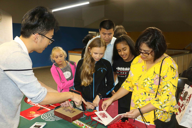 “啊,这是怎么做的?好漂亮!”,一位学生家长拿着一本生肖剪纸图爱不释手。孔院老师认真为其讲解了剪纸的艺术和生肖的故事。家长听完后,啧啧称奇。剪纸是中国最古老的民间艺术形式之一,作为一种镂空艺术,它能在视觉上给人一种透空的感觉和艺术享受。