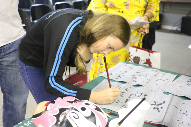“喔,我也来写汉字!”,三口之家的爸爸和妈妈“中国范儿”十足地拿起了这种端头有毛刷的小棍,准备“挥毫”,孩子在旁边好奇地跃跃欲试。书法,是中国及深受中国文化影响的周边国家和地区特有的一种文字美的艺术表现形式,在世界范围内享有广泛赞誉。