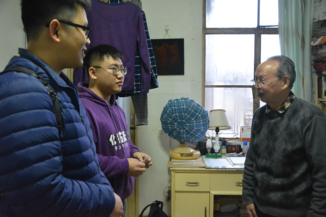 随后志愿者们分小组前后拜访了十一位退休教职工,老教师们看到捧着热腾腾的拗九粥的同学们尤为感动,热情地招呼着同学们进屋。林立中老师给同学们展示他即将出版的音乐合刊;黎文广老师给同学们讲述了农学院几经辗转,选址建校的历史,黎老师的妻子也翻出旧照片,回忆西湖与农学院的渊源。