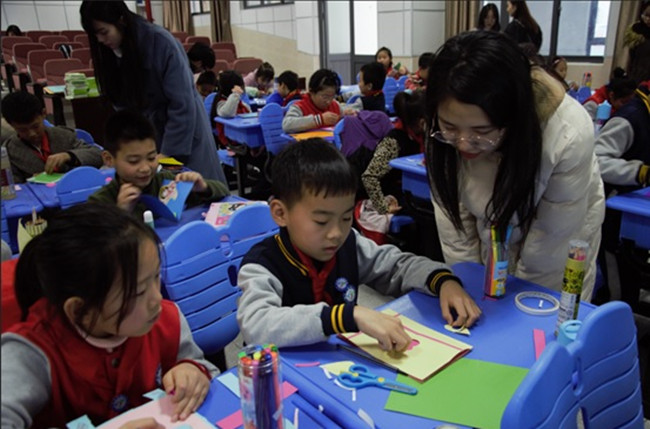 伴随着上课铃的响起支教活动正式拉开了序幕。授课过程分为两个部分,分别是知识讲解和动手实践。主讲人首先向同学们详细地介绍了“妇女节”的由来和历史,对历史上著名的女性进行详细的介绍并提问同学们印象中伟大的女性人物。主讲人在投影上放映贺卡的制作过程,孩子们聚精会神的观看,并用卡纸、剪刀、固体胶、水彩笔制作出一幅幅创意独特的手工贺卡,准备用于祝贺自己的母亲节日快乐。支教过程中,每位志愿者都以积极、热情、耐心的态度,认真的对待每一位孩子,并耐心地为孩子们解答疑问,积极的鼓励孩子们发挥想象力进行创作,课堂氛围其乐融融。下课后,同学们表示受益匪浅,热情的与志愿者合影留念。