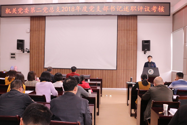 3月13日下午,机关党委第二党总支在明德楼龙岩厅召开2018年度党支部书记述职评议会议。下属党支部六位书记逐一进行述职,考核组、总支委员、各支部书记、党员代表、群众代表参会并进行测评,会议由总支书记林庆藩主持。