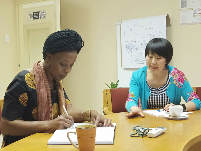 修华静与德班孔院教师交流教学心得