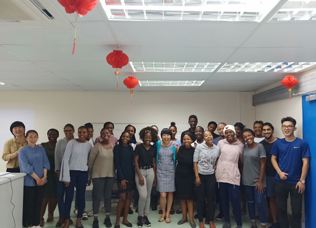 随后,修华静走进德班孔院汉语课堂随堂听课,了解德班孔院汉语教学基本情况。课后,修华静还与初级汉语班学员进行了交流。她以学员们在课堂中所学知识为引,生动形象地介绍了汉语声调与音乐旋律的相关性以及学习汉语的重要性,鼓励学员们学好汉语,希望未来可以通过孔子学院这一“桥梁”,与美国肯塔基大学的汉语学员进行交流,互相探讨汉语学习问题。