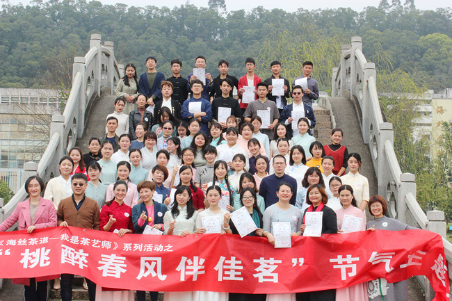 为加快推进课程教学改革创新,进一步丰富教学形式,提速课程内涵建设,3月19日上午,园艺学院茶学系《茶艺学》实验课教师邓婷婷将课堂搬到了观音湖畔,求知路上。2017级茶学创新班学生在接受实验课程学习的同时,应邀参加了“桃醉春风伴佳茗茶会”,现场展示、相互分享学习成果。同时参加茶会的还有中国大学MOOC《闽茶艺韵》课程的学生和福建省茶艺师协会的茶艺师。