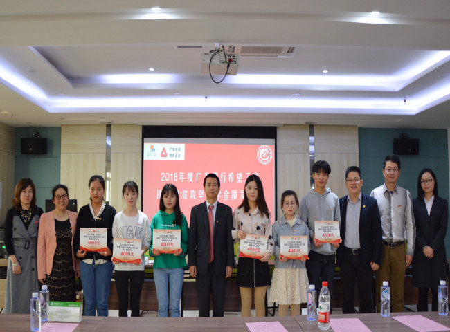 颁奖仪式最后,所有受助的学生上台领奖并合影留念。此次“广发银行希望工程脱贫攻坚”助学活动,体现了我校积极助力和关心贫困学生成长成才,以及社会力量为贫困学子献爱心,为社会传递真情的美好。