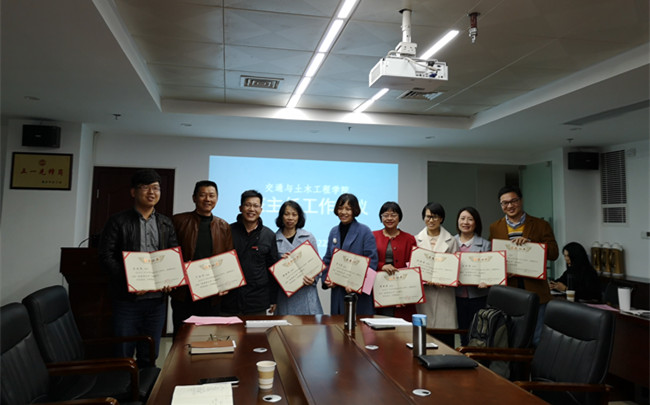 会议表彰了交通与土木工程学院2017-2018学年优秀班主任,邱仁辉代表学院党委为受表彰的优秀班主任颁发了证书和奖金。