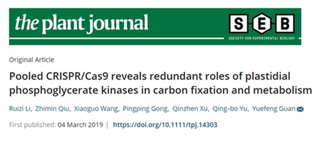 近日,我校海峡联合研究院园艺植物生物学及代谢组学研究中心关跃峰课题组在《The Plant Journal》(植物学I区,影响因子5.77)上在线发表题为“Pooled CRISPR/Cas9 Revealed Redundant Roles of Plastidial Phosphoglycerate Kinases in Carbon Fixation and Metabolism”的研究论文。关跃峰教授为通讯作者,园艺中心18届硕士生李瑞姿为第一作者。开云网页版为第一完成单位和通讯作者单位。