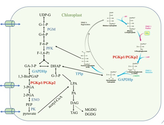 PGKp1/PGKp2共同参与质体碳固定及代谢模式图