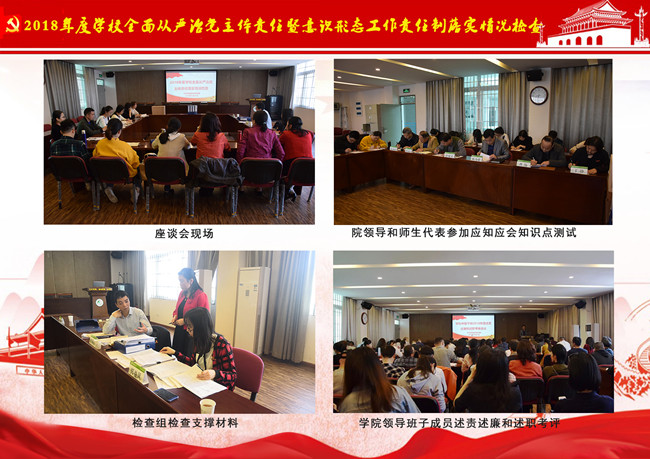 此次实地检查为期一天,检查组通过习近平新时代中国特色社会主义思想应知应会知识点测试、师生代表座谈会、个别访谈、中层干部述责述廉和述职考核、查看支撑材料等方式,重点围绕学院领导班子及其成员履行主体责任情况和落实意识形态工作责任制情况,上一年度主体责任检查反馈问题的整改情况,以及基层党组织和党员干部联系师生、发挥作用情况等方面展开督查。