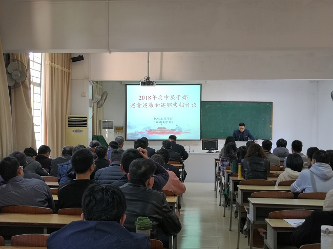 根据我校《关于做好中层干部2018年度述责述廉和述职考核工作的通知》要求,3月25日下午,机电工程学院在机电楼208召开学院党政领导干部2018年度述责述廉和述职考核评议会。述职测评会由学院党委书记陈辉主持,学院党政班子及教职工代表近80人参加了会议,校2018年度全面从严治党主体责任暨意识形态工作责任制落实情况检查组曾起郁、林彬彬老师到会指导。