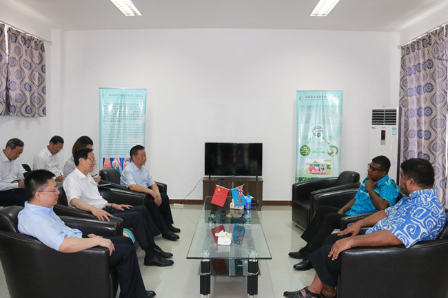 韩长赋部长听取了斐济农业部研究司代表关于中国援斐济菌草技术示范中心项目的进展情况介绍。斐济农业部高度客观评价了项目发挥的重要作用,指出项目的实施对解决旱季畜牧业的饲料短缺、增加农民收入、改善生态环境,促进农业持续发展等起了重要作用。