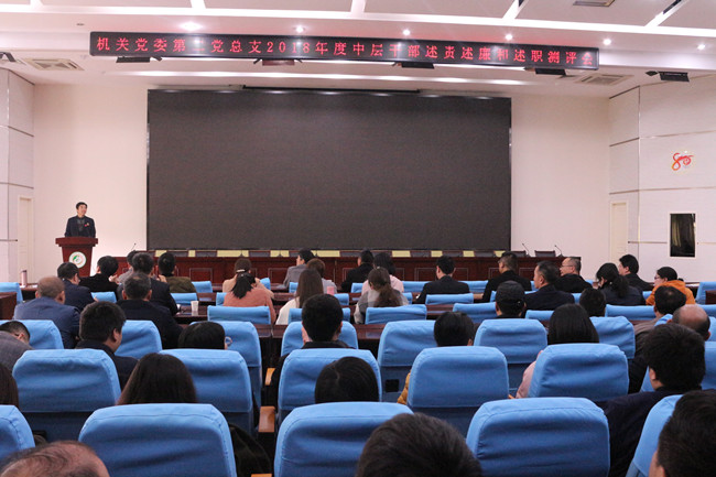3月26日下午,机关党委第二党总支在禧强楼学术报告厅召开中层干部2018年度述责述廉和述职考核会,对下属党支部的14名中层干部进行考核。机关党委第二党总支总支委员、科级以上干部、职工代表等100余人参加会议,校检查组组长谢志鸣、成员叶扬捷、李扬裕莅会督导,会议由机关党委第二党总支书记林庆藩主持。