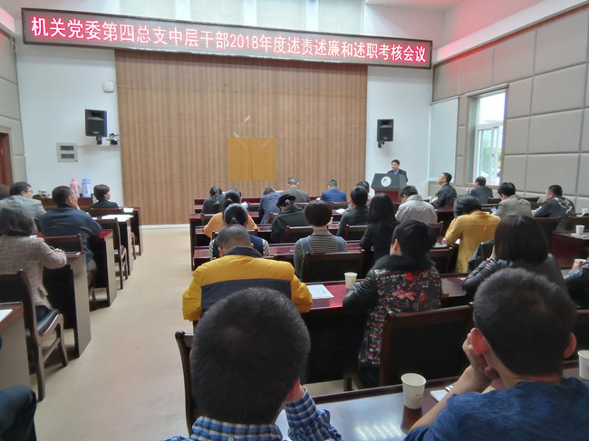 3月29日下午,机关党委第四总支在明德楼龙岩厅召开中层干部2018年度述责述廉和述职考核评议会。机关党委第四总支所辖部门(科研院、学术期刊部、社科处、海峡联合研究院)全体在编在岗职工参加会议,校第一检查组组长谢志鸣、成员叶扬捷、李扬裕莅会督导。