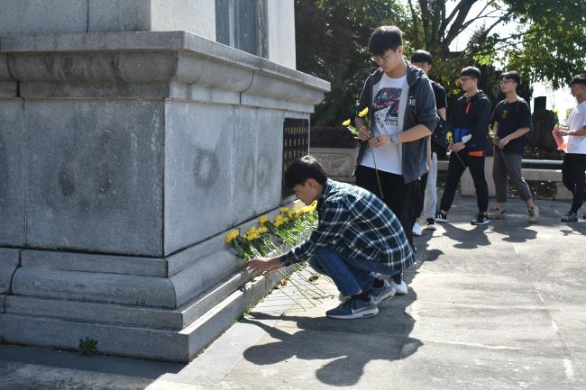 活动中,同学们怀着对英烈们的崇高敬意,列队肃立于福建见义勇为纪念碑前,手持黄花,环碑一周,认真瞻仰英雄纪念墙上英烈生前遗像和生平事迹,将寄托哀思的黄花放在纪念墙前,与英烈们做最后的道别。整个活动在庄严肃穆的气氛中结束。