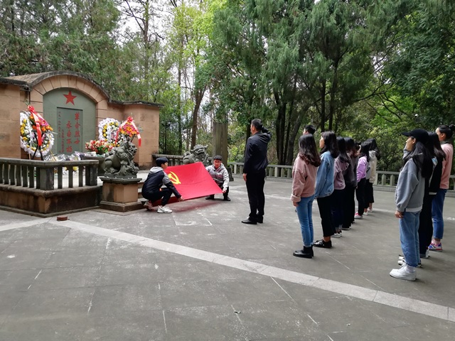 经济系师生党员来到革命烈士纪念碑前鞠躬献花并默哀。全体党员在经济系党总支书记孔祥荣的带领下重温入党誓词,一字一句铿锵有力,道出了党员同志对革命前辈们的缅怀与敬意,道出了党员同志对共产主义的坚定信念与执着追求。随后,全体师生党员在“中共福建省委旧址”纪念碑前重温了红军革命时期的红色文化。