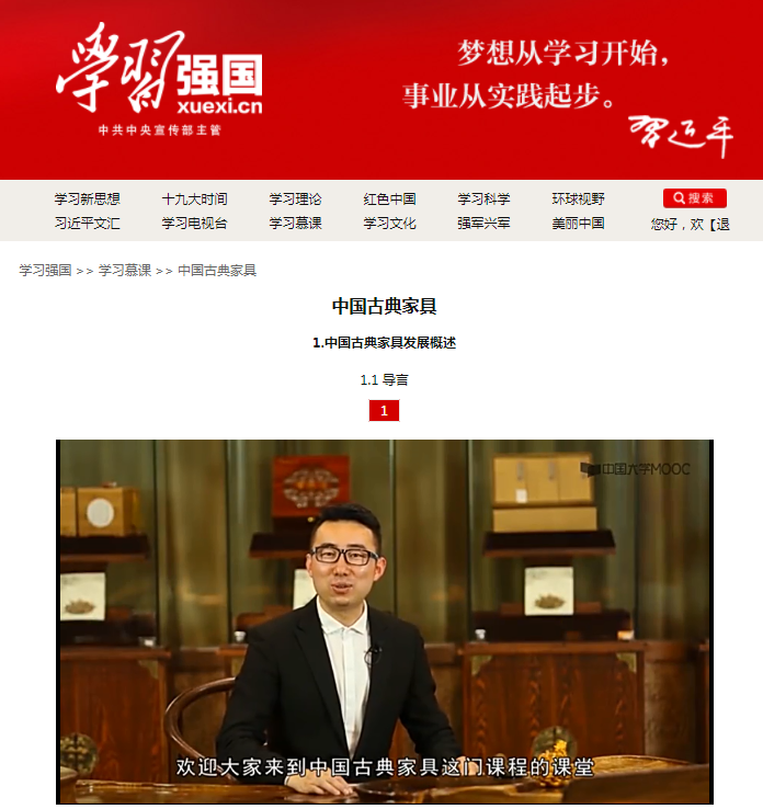 《中国古典家具》课程2017年入选“国家精品在线开放课程”
