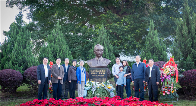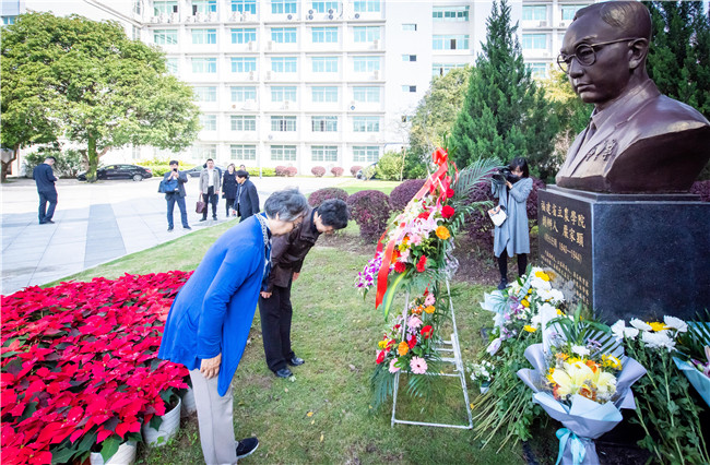 严隽琪一行首先前往下安严家显先生铜像前,拜谒福建省立农学院的创办人、著名昆虫学家、教育家严家显先生。严隽琪姐妹及其家人,校领导严金静、兰思仁分别上前敬献花篮,鞠躬致意,深切缅怀严家显先生。