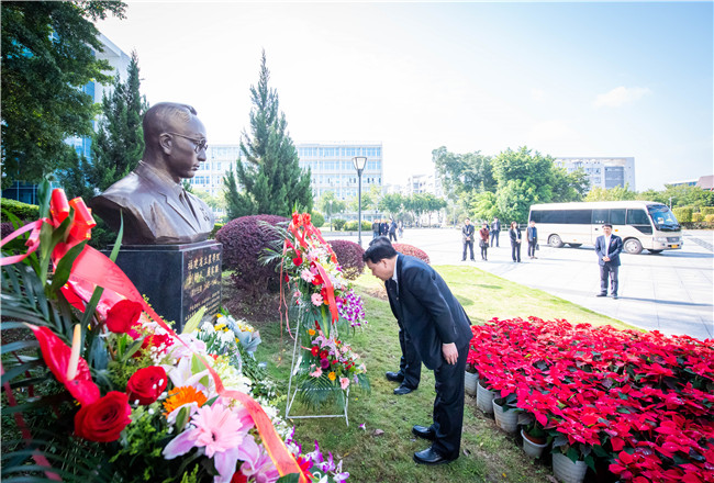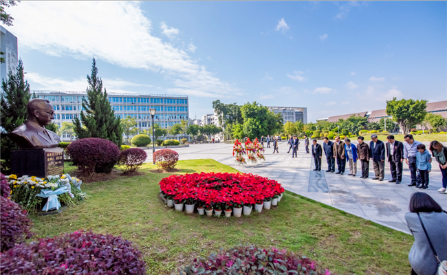 严隽琪一行首先前往下安严家显先生铜像前,拜谒福建省立农学院的创办人、著名昆虫学家、教育家严家显先生。严隽琪姐妹及其家人,校领导严金静、兰思仁分别上前敬献花篮,鞠躬致意,深切缅怀严家显先生。