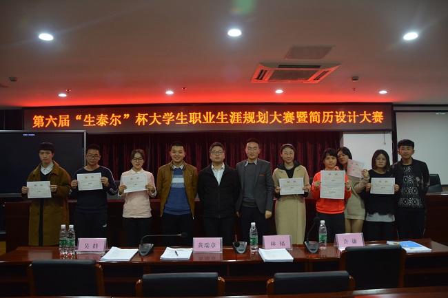 三轮比拼过后,经评委们的点评打分,最终郭晨同学获得本次大学生职业生涯规划大赛暨简历设计大赛一等奖,陈佳蔚、李霖同学获得二等奖,薛凯峋、谭晨、郭齐溁、顾小雨同学获得三等奖。