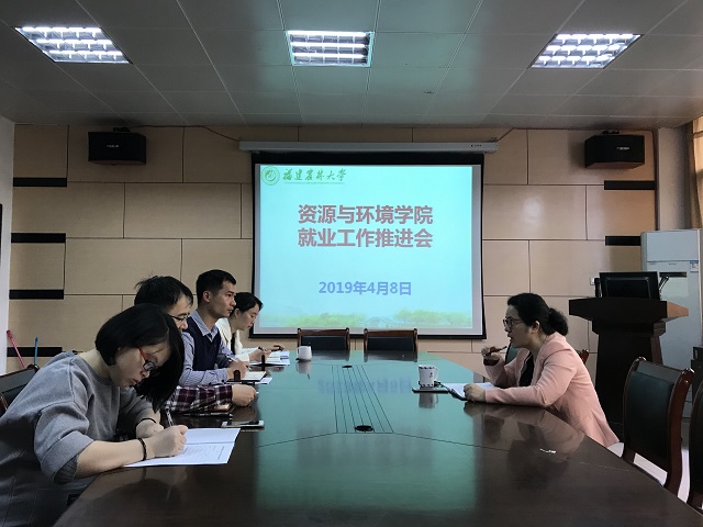 4月8日下午,资源与环境学院于博学楼210召开2019届毕业生就业创业工作推进会。会议由学院党委副书记陈月霄(主持工作)主持,全体政工参会。