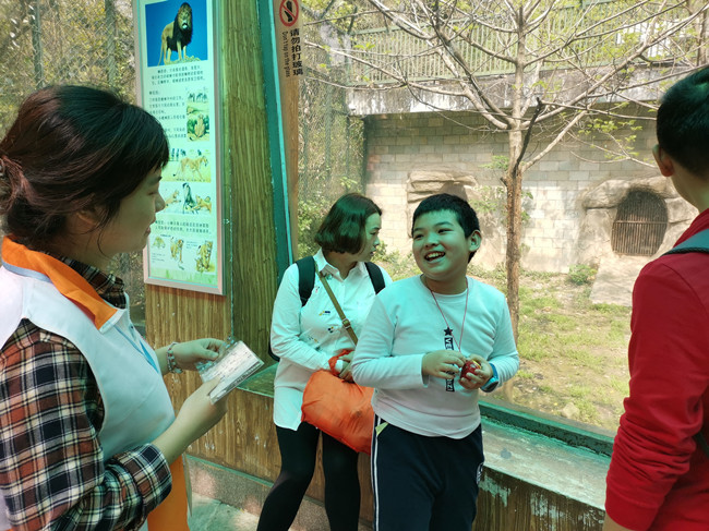 同学们按既定的计划抵达了天鹅湖、长颈鹿、狮虎豹三个场馆,分为三组,开始有条不紊地为游客们讲解动物的生活习性、物种分布等知识,并为有需要的游客引导指路,还给小朋友们讲起了有趣的动物故事。