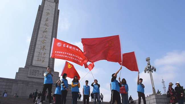 活动期间,师生一行先后参观了南昌八一广场、八一起义纪念馆、江西革命烈士纪念堂、江西省历史博物馆等爱国主义教育基地。在八一广场,助教团成员开展了一场主题为“传承革命精神,争做时代先锋”特别团日活动,同学们在指导教师的介绍下进一步了解“南昌起义”的经过和人民军队从创立到发展的艰苦历程,随后同学们齐声诵读碑文,向英雄纪念碑敬献鲜花,并向在南昌起义中逝去的革命先烈默哀悼念,最后同学们庄严地举起了自己的右手,重温入团誓词。活动结束后,同学们在八一广场与南昌市民一同挥舞国旗、党旗、团旗,共同唱响《我和我的祖国》,为新中国70华诞送上美好祝愿。