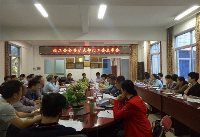 4月10日下午,校工会常务副主席谢拥群主持召开校工会委员扩大部门工会主席会议,审议2019年重要传统节日慰问品和教职工生日慰问品采购事宜。会议邀请了校工会经审委主任杨朝晖,国资处副处长郭朝晖列席。